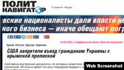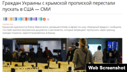 Згадані сайти повідомили, що США ввели так звані внутрішні документи, за якими в'їзд на територію Сполучених Штатів людям, які мають кримську прописку, заборонений. Такий висновок зробили з коментаря журналістки «1-го Російського каналу» в Криму Олени Іваниченко. В ефірі програми «Народний вердикт» телерадіокомпанії «ИТВ» від 11 березня 2016 року вона повідомила: