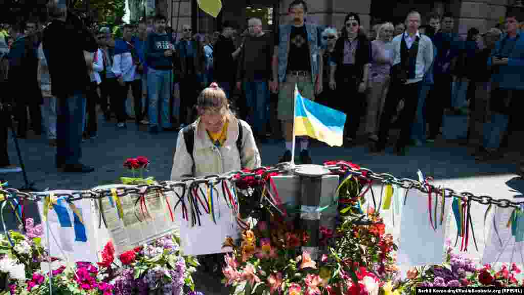 У той же час в іншій частині міста, біля Соборної площі, де два роки тому почалися сутички, квіти принесли проукраїнські активісти