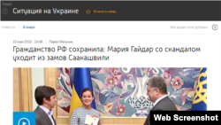 У вівторок на каналі «Россия-24» повідомили про відставку Марії Гайдар з посади заступника голови Одеської ОДА Міхеїла Саакашвілі. Ведучий програми заявив, що формальним приводом став буцімто російський паспорт Гайдар. Однак, вона сама пояснює, що ще рік тому відмовилась від російського громадянства, а у відставку іде через те, що неможливо обіймати посаду на державній службі і одночасно бути депутатом Одеської обласної ради.