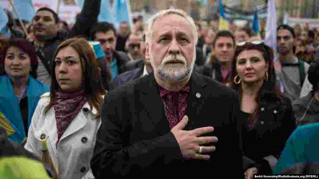 Ескендер Барієв, український кримськотатарський політик, виголошує промову
