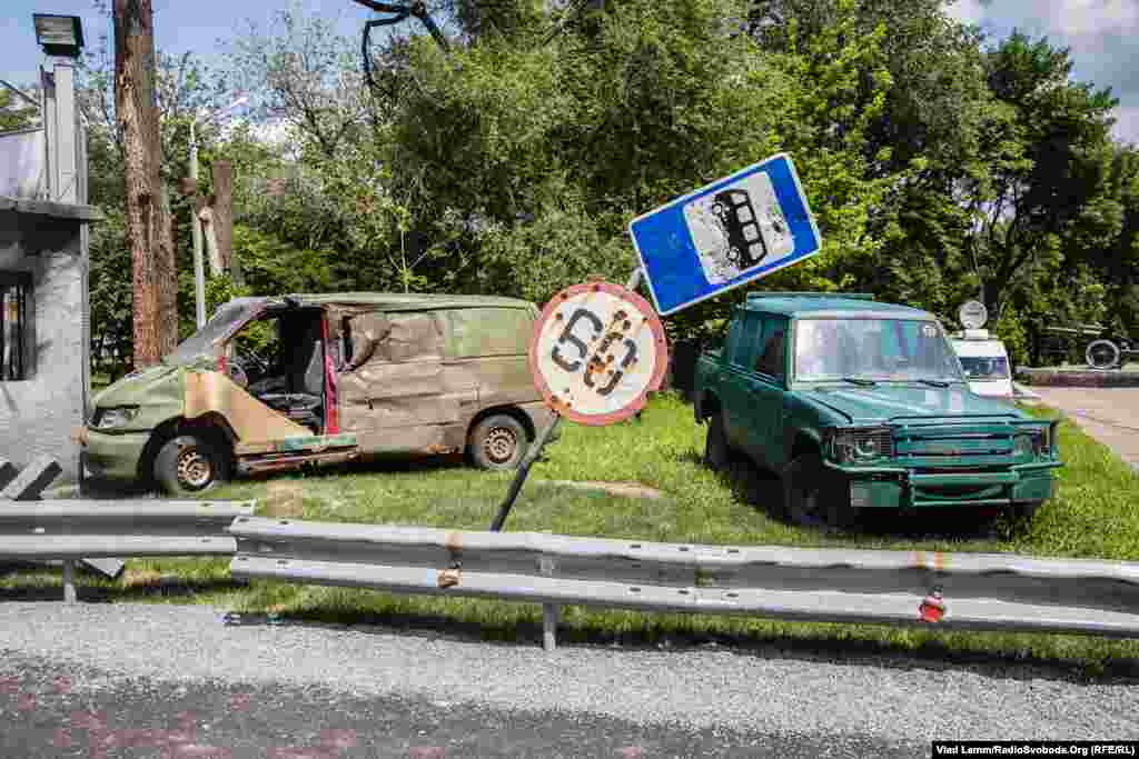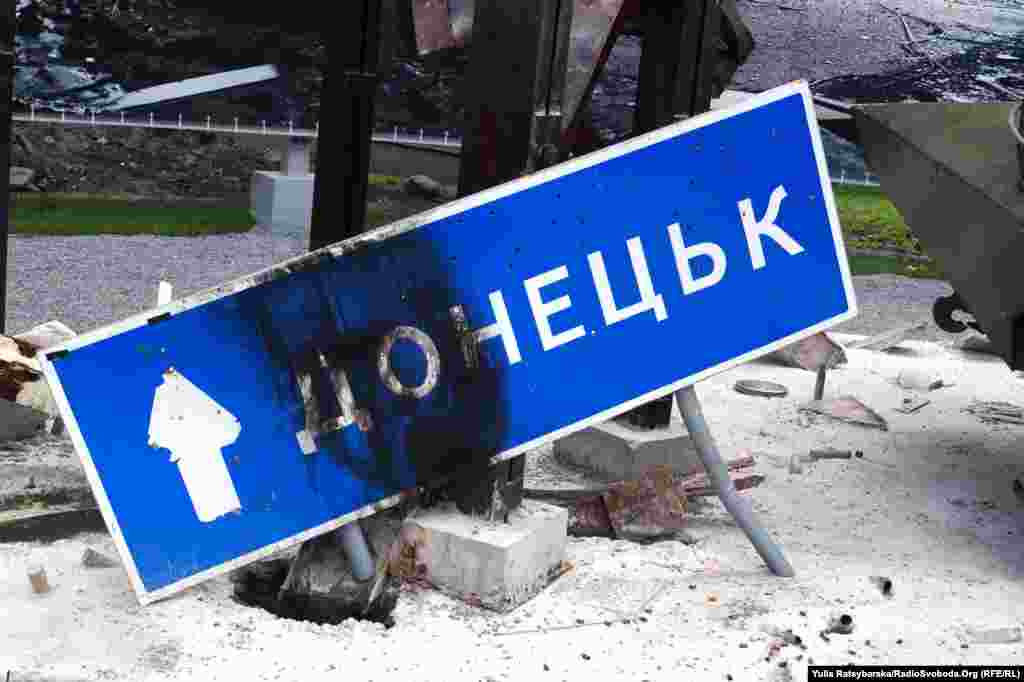 На вході до Музею АТО просто неба відвідувачів зустрічають прострілені дорожні знаки із зони бойових дій
