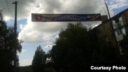 Скрізь на магазинах, бібліотеках, аптеках, школах, лікарнях і навіть в машинах таксі можна було побачити прапори «ДНР» двох видів – простий триколор та триколірний прапор із двоглавим імперським російським орлом.
