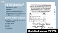 Народні обранці вважають, що електронне декларування буде порушувати конституційні принципи верховенства права, законності, індивідуальної відповідальності, заборони втручання в особисте життя і конфіденційної інформації.