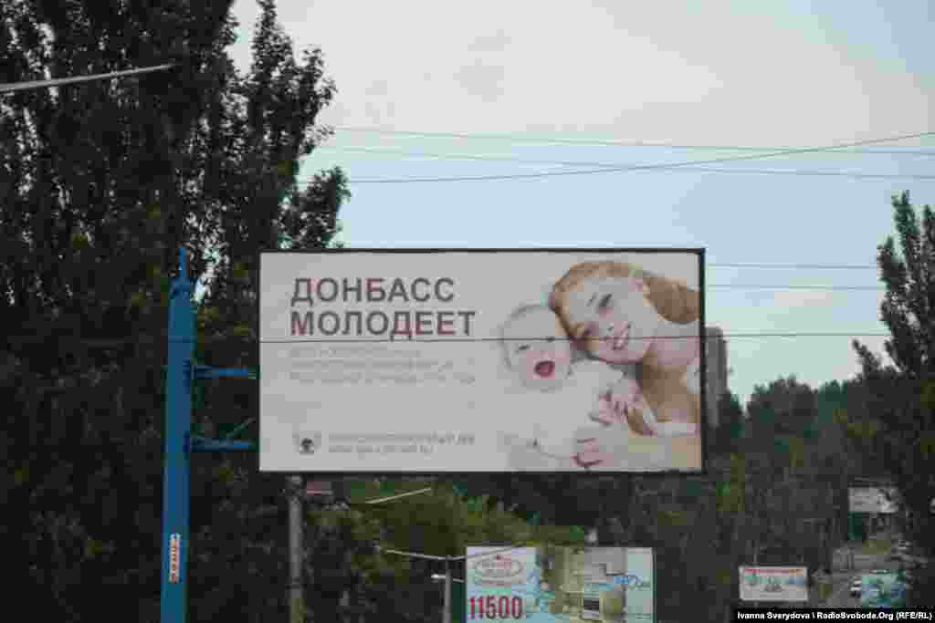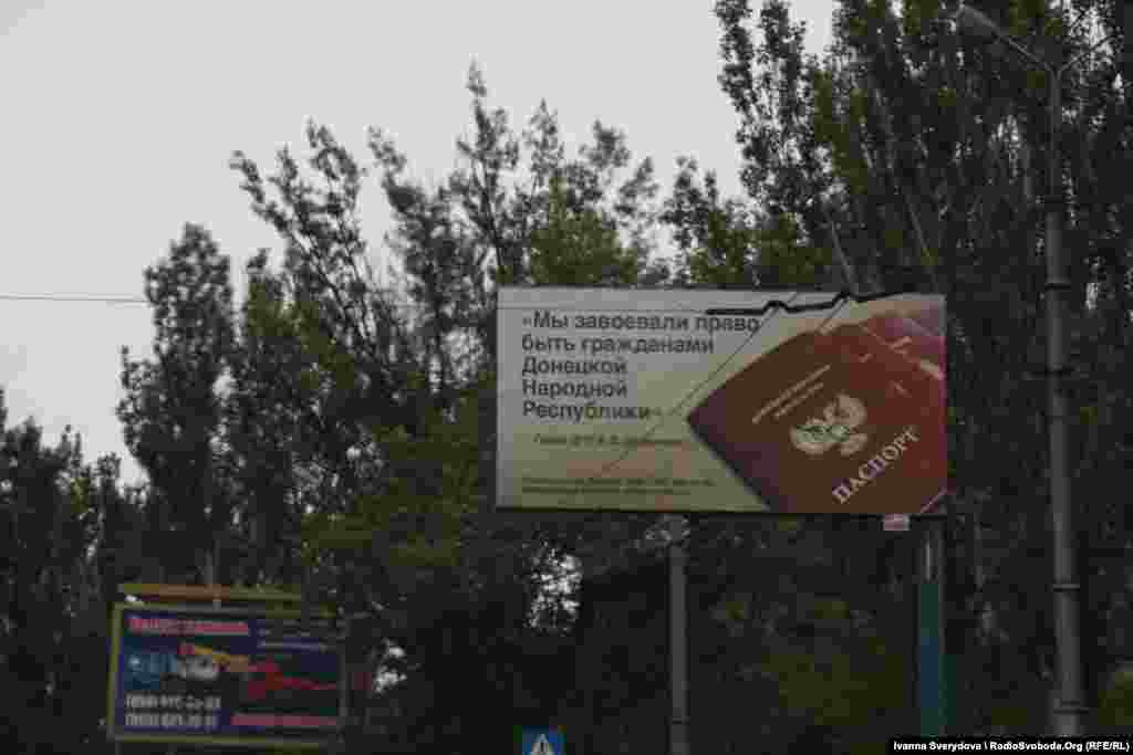 Із більшості білбордів на містян дивиться ватажок бойовиків Олександр Захарченко або його тк звані «міністри». Хоча, останнім часом реклами з Захарченком стало менше. «А то ж неможливо було їздити містом, кожні п’ять метрів – він, вже набрид усім», – зауважив у розмові з Радіо Свобода таксист Іван