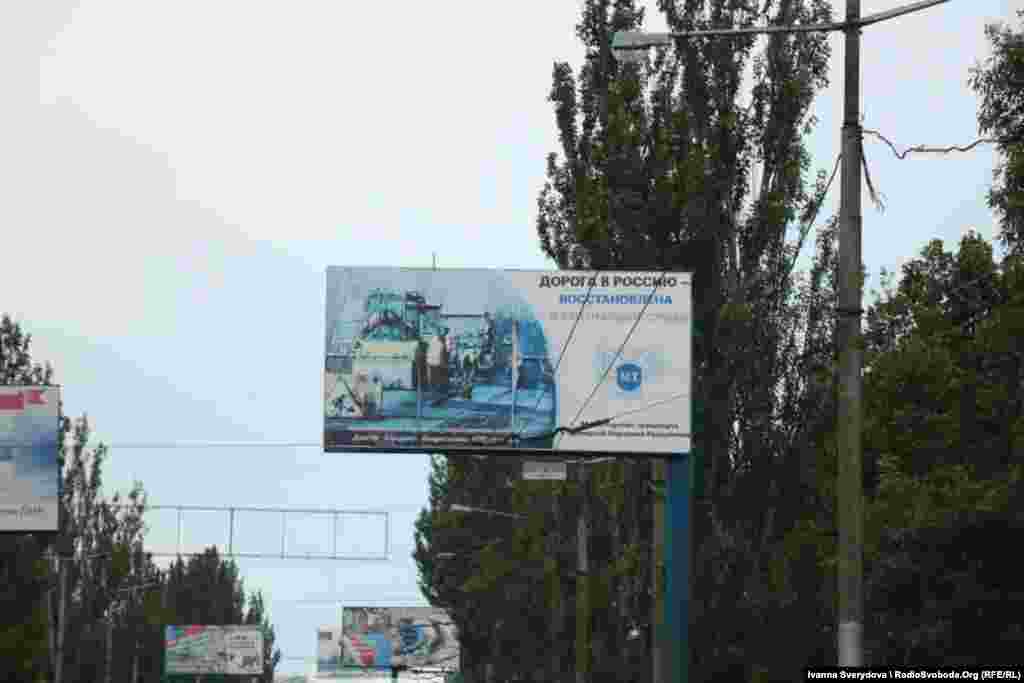 «Відновлена дорога в Росію», бойовик Захарченко і «зростання народжуваності на Донбасі» – такими гаслами заповненні нині білборди Макіївки, що розташована на окупованій проросійським угрупованням «ДНР» території. Місцеві майже не звертають на вивіски уваги, проте, бойовики «ДНР» активно намагаються привернути до себе увагу. Радіо Свобода пропонує добірку білбордів з вулиць міста по інший бік лінії зіткнення.