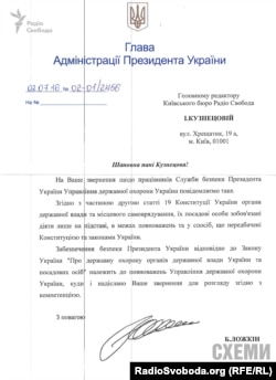 «Схеми» намагалися отримати коментар Петра Порошенка. Через два тижні після письмового звернення надійшов лист за підписом голови його адміністрації Бориса Ложкіна, який повідомив, що це питання повністю у компетенції Управління держохорони. Тому наразі невідома офіційна позиція президента з цього приводу.