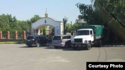 Активісти передали Радіо Свобода кілька фотографій, на яких можна побачити тентовану вантажівку із державними номерами військового зразка, білі символи на чорному тлі, і людей в камуфляжі. Фотографії зроблені 14 липня біля церкви великомученика Димитрія Солунського в Києві.