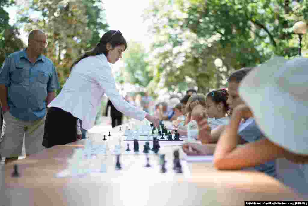 20 липня до Міжнародного дня шахів у парку імені Тараса Шевченка у Києві відбулася одночасна гра, де аматори шахів змогли перевірити свої сили у протистоянні з міжнародними гросмейстерами. Майстер ФІДЕ (Міжнародна організація шахістів – ред.) серед жінок Юлія Осьмак та гросмейстер Володимир Сергеєв вступили у бій із шахістами. Хто із киян та гостей столиці наважився на двобій та як себе почували гравці – дивіться у галереї Радіо Свобода