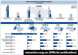 Більшість – 60% – громадян вважають рідною мовою українську, 15% – російську, 22% – і українську, і російську однаковою мірою, 2% респондентів вважають рідними інші мови.