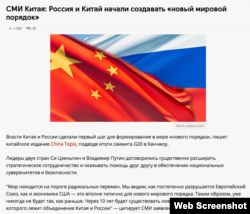 Далі, автор статті наводить ще один приклад новини із заголовком: «ЗМІ Китаю: Росія і Китай почали створювати «новий світовий порядок».