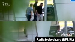 Їх вихід із VIP-терміналу намагаються закрити від сторонніх очей автівкою. Але і тут камери встигають зафіксувати колишнього голову адміністрації президента Віктора Януковича та його сестру.