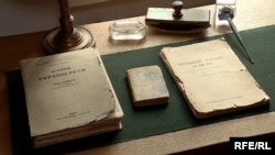 – В цій кімнаті можна побачити «наукову кухню» Михайла Грушевського. До слова, чому так стоять столи? Він так любив працювати. На цих двох столах він розкладав книжки, а на цих він працював. Це дуже зручно. Взагалі, Михайло Грушевський був трудоголіком, часто казали, що він надто багато хоче і вимагає. Ще будучи студентом, він писав, що йому не вистачає 24 годин на добу, йому потрібно 36. А згодом, він писав, що йому ще більше потрібно. «Історія Ураїни-Руси» – це робота всього його життя і це перша така фундаментальна праця з історії України. Це було прагнення і вчителя Грушевського – Антоновича і це було його особисте прагнення, тому що він піддавав критиці звичайну схему руської історії. Йому важливо було зробити історію України, а не історію загальноімперську.