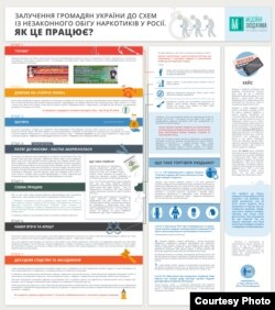 Протягом попередніх року-півтора сотні громадян України були затримані та засуджені в Російській Федерації за обвинуваченнями в розповсюдженні наркотичних речовин. Правозахисники вважають, що багато хто з них міг стати жертвами злочинів, пов’язаних із торгівлею людьми із залученням особи до експлуатації її праці. Здебільшого в халепу українців потрапляють через яскраву рекламу, що обіцяє швидкий та легкий заробіток за некваліфіковану працю кур’єрів-експедиторів: до «сиру в мишоловці» людей штовхає фінансова скрута. Ці оголошення ви досі можете бачити, наприклад, у Київському метрополітені, і не схоже, що правоохоронні органи докладають достатньо зусиль, аби згорнути діяльність схеми на території України. Тим часом, кількість затриманих за «наркотичними» статтями українців зростає, а Росія цю статистику намагається використати у власних пропагандистських цілях.