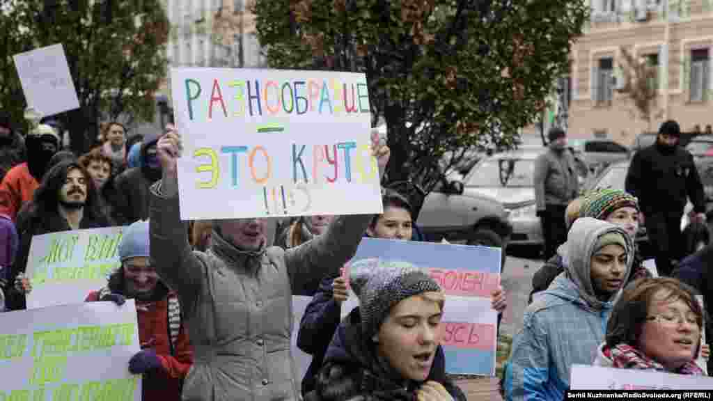 22 жовтня у Києві відбулася акція до Міжнародного дня дій, спрямованих на депатологізацію трансгендерності. Як передає кореспондент Радіо Свобода, близько 50 учасників пройшли маршем від Софійської до Михайлівської площі. Вони тримали в руках плакати з написами: «Моє тіло – моє діло», «Трансгендерність – не хвороба», «Зупиніть транспатологію» тощо.