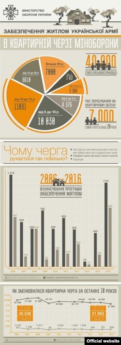 – Ми на першому етапі вирішення проблеми – з’ясовуємо, що відбувається, шукаємо можливості. Є кілька складових – це і квартири для ввійськовослужбовців, і гарнізони, й інфраструктура. Квартирна черга – це наслідки радянських часів. Тоді економіка була під повним контролем уряду, і вони могли робити все, що хочуть. Сьогодні грошей на це немає, і закон не може працювати.