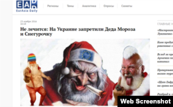 «У Києві вирішили і в цьому році заборонити Діда Мороза і Снігуроньку, влада країни прирівняла обох персонажів до Леніна, заявивши, що вони підпадають під закон про «декомунізацію», – йдеться у новині.