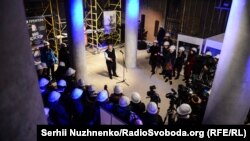 Під вигуки «ганьба» та оплески з будівлі Театру на Подолі таки скинули риштування. Між критиками споруди, серед яких представник партії «Свобода» Ігор Мірошниченко, та прихильниками і акторами театру виникла суперечка.