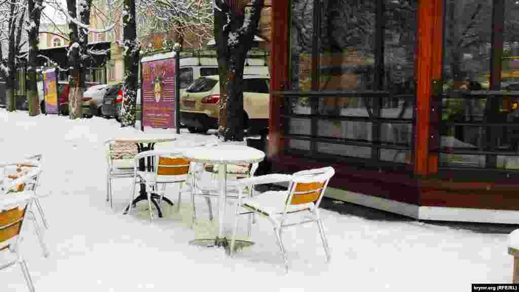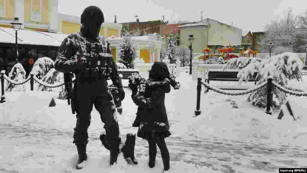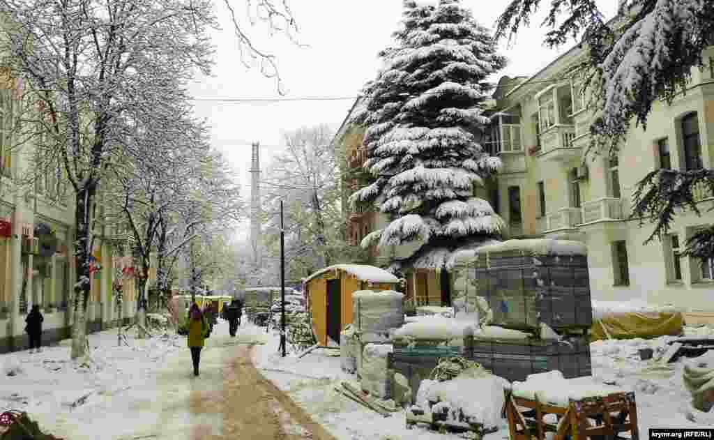 У Сімферополі активно готуються до приходу Нового року. На центральній площі Леніна відкрили головну ялинку Криму, а також встановили фонтан, що світиться. Біля Академічного музичного театру проводять новорічний ярмарок, де гостям і жителям столиці пропонують сувеніри, теплі шкарпетки і російські матрьошки. Крим.Реалії запрошує на прогулянку засніженими вулицями кримської столиці.