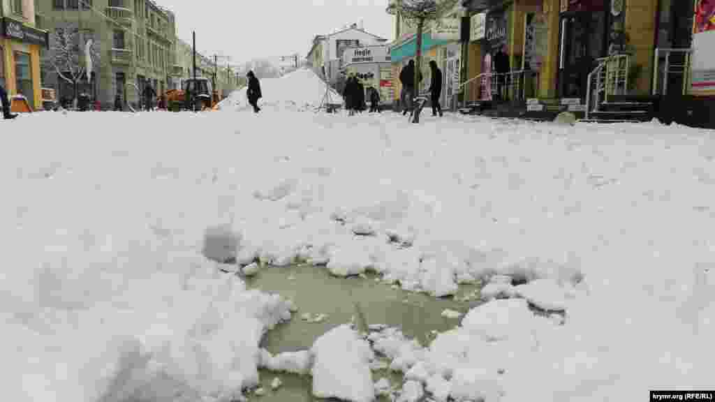 На центральних вулицях кримської столиці ведуться ремонтні роботи, які, за словами глави адміністрації анексованого Сімферополя Геннадія Бахарева, до Нового року закінчити не встигнуть