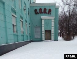 Теперь главный вход и окна заложены кирпичами, зато сам центр украшает красная надпись «С.С.С.Р.».