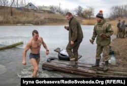 «Очень большой сегодня праздник христианский – Крещение. Очищение всей воды, очищение людской души. Праздник очень символичен. Очень хорошо, что ребята военные принимают в нем участие. В этот день хочу пожелать всем здоровья, чтобы вода очистила всех, чтобы мы не имели потерь в этом году, и он стал последним в этой войне», – сказал командир 8-го батальона украинской добровольческой армии Андрей Червень.