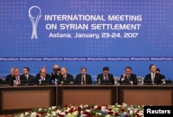 Спостерігають за переговорами щодо Сирії в Астані посол США у Казахстані і спеціальний посланець ООН у Сирії Стаффан де Містура. Метою зустрічі є зміцнення угоди про припинення вогню, досягнутої у грудні, і просування переговорного процесу щодо врегулювання конфлікту у Сирії, що триває у швейцарській Женеві. Але, схоже, що сторони протистояння наразі не готові не лише до прямих переговорів, але й до переговорів за участі посередників. Після понеділкової зустрічі сторони до компромісу не наблизилися.