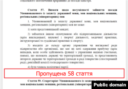 І на закінчення – про мовних інспекторів. У законопроекті № 5670 передбачена Служба мовних інспекторів, які підпорядковані уповноваженому із захисту державної мови. У законопроекті № 5669 така служба випала – в прямому значенні цього слова. Відразу після статті 57 йде стаття 59. Мабуть, Сергій Головатий із депутатами так квапилися випередити реєстрацію законопроекту №5670, що не встигли змінити нумерацію. Так що насправді статей 64, а не 65. У зв’язку з таким «цікавим» рішенням зникли статті «Підстави здійснення мовного інспектування» та «Мовне інспектування».