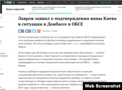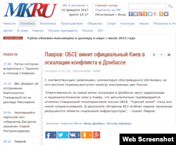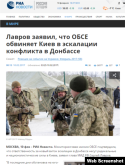 У п’ятницю російський канал «Звезда» вийшов із заголовком: «ОБСЄ звинувачує Київ у ескалації конфлікту на Донбасі». Моніторингова місія підтвердила, що за загострення на Донбасі відповідальними є радикальні і націоналістичні сили у Києві, мовиться у «новині». Про це заявив глава МЗС Росії Сергій Лавров, повідомляє сайт каналу «Звезда» із посиланням на видання «Известия».