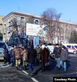 О дев’ятій ранку за Києвом у Донецьку розпочалась церемонія прощання з лідером бойовиків угруповання «Сомалі» Михайлом Толстих із позивним «Гіві». Як і у випадку з «Моторолою», церемонія проходила у будівлі театру опери та балету, а сама черга із охочих (чи змушених) попрощатись розтяглась по вулиці Артема, яку бойовики перекрили з двох сторін. На початок церемонії черга до будівлі театру була відносно невеликою: якщо у цей же самий час у жовтні, під час похорону «Мотороли», хвіст черги сягав майже готелю «Донбас-Палас», то у випадку з «Гіві» черга не сягнула й половини цієї відстані.