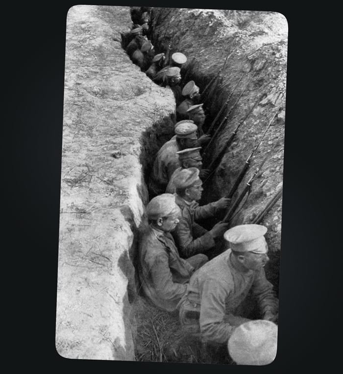 Урочисті проводи військ на фронт. Революція підірвала бойовий дух армії. Дезертирство і бунти стали звичною справою. Комісара Тимчасового уряду, який спробував умовляти дезертирів, забили до смерті. До липня від колишніх сподівань на мир і народовладдя не залишилося і сліду.