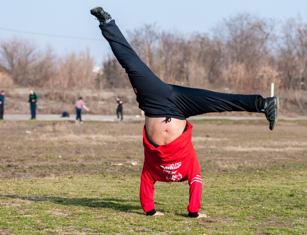 Сашко захоплено робить вправи, бігає та стрибає. Світить сонце, йому по завершенні тренування трохи спекотно, але мати не дозволяє задовго балакати з тренером на ще трохи пронизливому весняному вітрі – відправляє переодягатися.