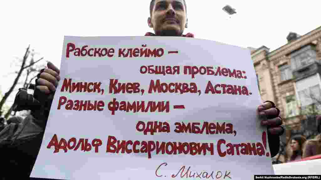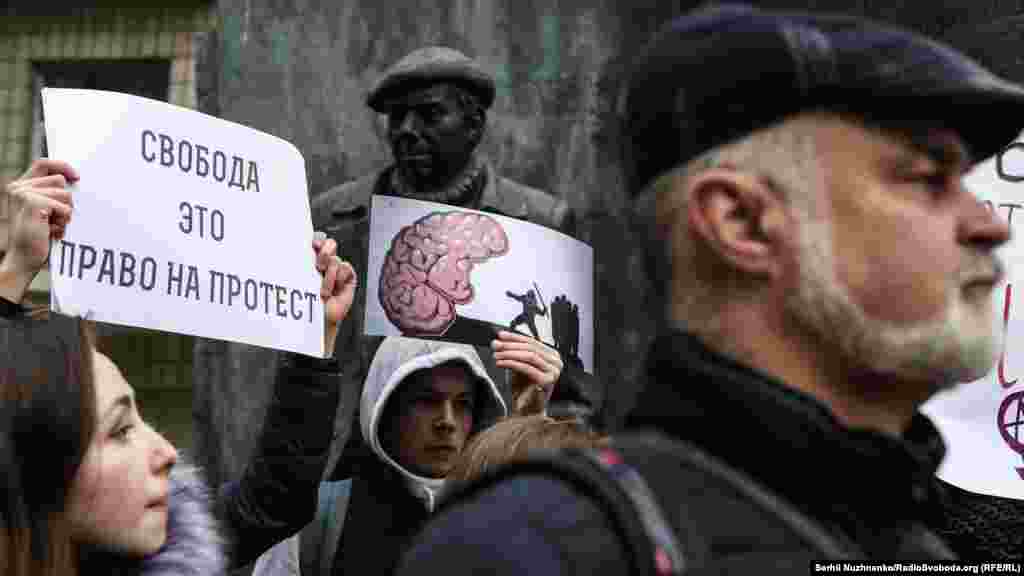 Близько сотні людей тримали в руках біло-червоно-білі прапори Білорусі та плакати з написами «Стоп репресії», «Хай живє Бєларусь!», співали пісні.