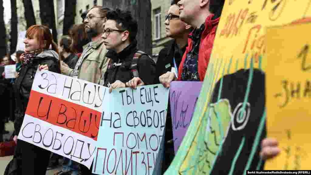 У Києві біля посольства Білорусі відбулася акція на підтримку затриманих в Мінську під час святкування Дня Волі 25 березня.
