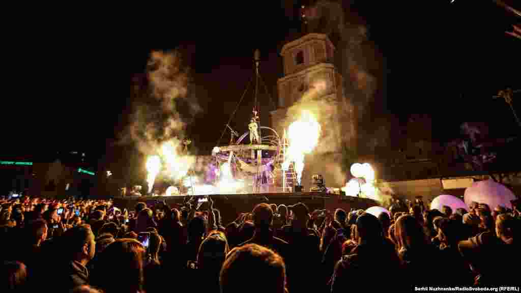 І все-таки, 14-й рік поспіль, «Французька весна» розпочинається великим вуличним дійством. Цього разу це повітряно-акробатична вистава «Галілео» від компанії Deus ex machina. З приходом сутінок у небі починає хитатися велика сфера, її рух розпочинають повітряні акробати, що виконують неймовірні трюки, нехтуючи законами ваги та тяжіння. У русі сфера піднімається все вище до зірок.