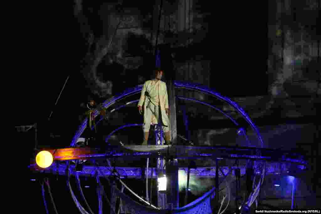 Чується голос, це Галілео – італійський астроном XVII століття. Він розповідає історію свого відкриття – теорії геліоцентризму, згідно якої сонце є центром системи планет, що обертаються навколо нього, і Земля також. Отже, за задумом режисера сфера – це небо, а акробати – зірки. Видовищно, захопливо, неймовірно ніжно та гарно.