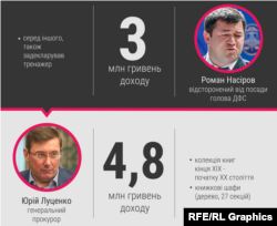 Усунений з посади голова Державної фіскальної служби Роман Насіров, який зараз перебуває під слідством, задекларував дохід у три мільйони гривень, при цьому, взагалі не внісши у реєстр зарплату за минулий рік. Майже все із цих трьох мільйонів – передача прав та обов'язків за договором про участь у фонді фінансування будівництва.