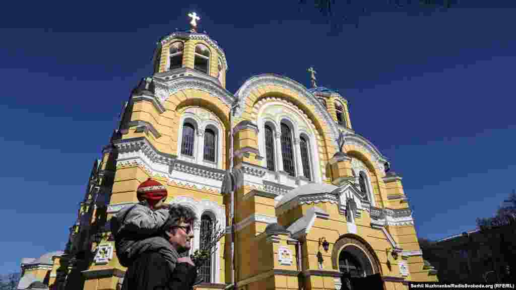 Кияни та гості столиці зібрались біля Володимирського собору, аби освятити вербу та помолитися.