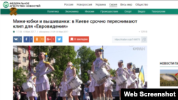 До такої новини підкріпили і відео: на Хрещатику дівчата у костюмах грають на барабанах, Вєрка Сердючка їздить у кабріолеті, поруч дівчата танцюють у вишиванках.