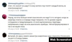 «Света нет второй час. О выключении не предупреждали. Кто что слышал? Надоело уже кормиться «завтраками» «властей». Обещали, что свет будет и без Украины. И где?»