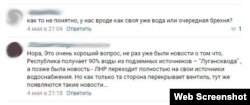 После электроэнергии группировки «ЛНР» и «ДНР» могли остаться и без воды. Украина поставляет воду в Луганск с двух основных водозаборов: с Западной фильтрованной станции в районе Лисичанска и Петровского водозабора в Станично-Луганском районе. По заявлениям сепаратистов, в 2017 году они договорились с украинской стороной о поставке воды на территорию, временно подконтрольную группировке «ЛНР». Но, по их словам, Киев постоянно без предупреждения прекращает подачу воды.