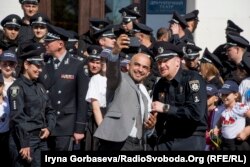 Із політичною заявою виступив народний депутат Мустафа Найєм. Він сказав, що дуже сподівається, що згодом і у звільненому Донецьку буде працювати така поліція і буде таке свято.