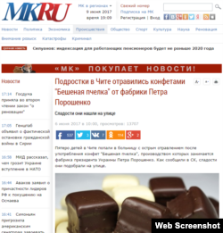Інші ЗМІ також активно поширили це повідомлення і вийшли із заголовками: «У Росії чоловік отруїв дітей, обробивши цукерки Roshen наркотиками», «У Читі діти отруїлися наркотиками, упакованими в обгортки цукерок Roshen», «Українські солодощі: Діти в Читі отруїлися наркотиками в цукерках від Roshen», У Читі діти отруїлися цукерками фабрики Порошенка, «Підлітки в Читі отруїлися цукерками «Бешеная пчелка» від фабрики Петра Порошенка», «Скажені бджілки» Порошенка в Читі отруїли дітей» та інші.