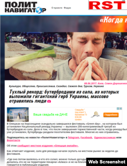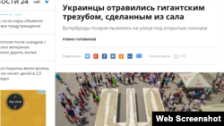 Так, наприклад російський канал «РЕН-ТВ» повідомив, що спроба встановити рекорд 200-кілограмовим гербом-бутербродом із салом начебто провалилася в Україні. Мешканці міста Олешки (Херсонська область), які спробували частування, стали масово звертатися до лікарень з ознаками отруєння.