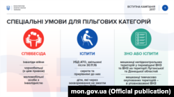 Вступники із тимчасово непідконтрольних територій Донбасу чи окупованого Криму, якщо не мали змоги скласти ЗНО, можуть вступати за іспитами, однак у такому випадку вони можуть здобувати освіту у навчальних закладах чотирьох областей – Миколаївської, Запорізької, Херсонської та Одеської. Такі абітурієнти вступатимуть через центри «Крим – Україна» або «Донбас – Україна».