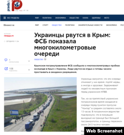 Деякі ЗМІ Росії написали про «величезні черги», використавши те саме фото. Наприклад, сайт «Правда.ру» повідомив у вівторок про багатокілометрові черги на адмінкордоні із тимчасово окупованим півостровом і вийшов із заголовком: «Українці рвуться до Криму: ФСБ показала багатокілометрові черги».