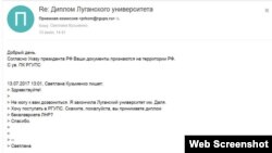 В приемной комиссии Уральского федерального университета сообщили, что о выдаче своих дипломов в донецком «учебном заведении» слышат впервые. А вот в приемной комиссии Ростовского государственного университета путей сообщения (РГУПС) подтвердили, что «дипломы» луганских боевиков принимают, и сослались на указ президента России Владимира Путина.