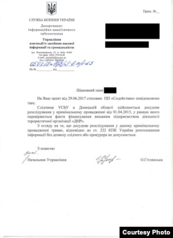 «Следователями УСБУ в Донецкой области осуществляется досудебное расследование в уголовном производстве от 1 апреля 2015 года, в рамках которого проверяются факты финансирования указанным предприятием (ЧП «Содействие» в Торезе – ред.) деятельности террористической организации «ДНР», – заявили в СБУ.