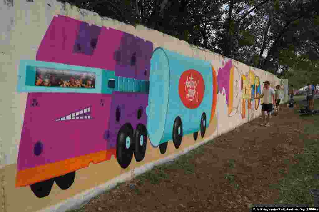 У Дніпрі жителі міста разом з 30 професійними художниками створюють півкілометровий мурал. Це – фінальна акція першого фестивалю вуличного живопису «Mural Fest Dnipro», який тривав з кінця червня.