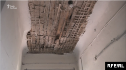 «Замазав шви, але воно скоро знову розсиплеться. Ось кут – там взагалі дірка була. Відвалилось. Дощ іде – постійно тече. Навіть можна поглянути зверху – висить шматок даху. Після АТО приїхав – дали кімнату», – розповідає чоловік.