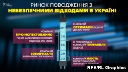 Щороку в Україні утворюється близько 312 мільйонів тонн відходів. Частина з них, зокрема, найнебезпечніші, опиняються на стихійних звалищах, у ярах та лісосмугах. Причина – більшість компаній, які мають відповідні ліцензії, займаються переробкою тільки на папері, визнають посадовці Мінприроди і недержавні експерти. Обґрунтовуючи необхідність вирішення проблеми, у профільному міністерстві заявляють про перевірку переробників відходів та позбавлення порушників ліцензій. Натомість деякі депутати та експерти звинувачують урядовців у лобізмі. Тим часом, більша частина небезпечних відходів в Україні не утилізується, зокрема, внаслідок недоліків природоохоронного законодавства, наголошують фахівці.